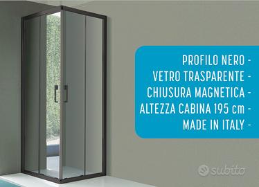 BOX DOCCIA NUOVO a soffietto in acrilico. Misure : altezza 185 cm.,Larghezza 80 x 80 cm. Apertura totale. PREZZO € 85 ( Pagamento anche alla consegna) Disponibilità di molte altre misure e modelli con diversi prezzi. Da ritirare in negozio o consegna a carico dell'acquirente in tutta Sardegna. Seguiteci su facebook in CASULA SNC