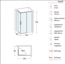 BOX DOCCIA, nuovo e mai utilizzato, acquisto erroneo per le dimensioni del mio bagno. Non esitate a scrivermi se interessati.