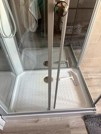 In ottime condizioni, dotata di più getti laterali regolabili, soffione a pioggia, doccetta manuale, specchi interni e mensola portaoggetti. Design moderno con chiusura ermetica a vetri, ideale per un bagno elegante e funzionale.