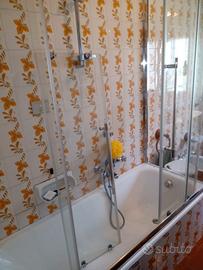 Si vende per completo rinnovo del bagno, box in cristallo per vasca, ancora in eccellenti condizioni. L'accesso alla vasca avviene attraverso due ante scorrevoli che si possono anche facilmente sfilare per una pulizia più accurata. Misure: altezza 150, lunghezza 166 e profondità 69. Molto elegante il lato fisso senza profilo superiore. Viene venduto parzialmente smontato con tutte le viti per il montaggio.