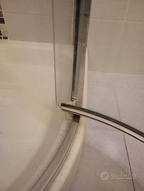 Box doccia angolare stondato 70x90 con due lati fissi e apertura a battente.