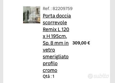 Nuovo , scartato ma mai montato. Acquistato pet errata misura . Scorrevole 120. Modello Remix , Tutto ancora nuovo, prezzo trattabile . . Trasporto e montaggio nn incluso