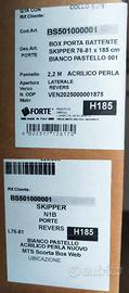 Vendo a 130 euro box doccia 2 lati con porta battente reversibile, in plastica bianco pastello e vetro in acrilico perla con gocce finte, completo di angolari, tappi copri viti e altro (le foto fanno vedere tutto). Lo vendo causa cambio tipologia doccia. Il box è praticamente nuovo (usato per circa 1 mese). Non riporta segni, graffi, botte o altro. Le misure sono 76-81x185 cm per la porta e 77-80x185 cm per il lato fisso. Chi fosse interessato deve organizzarsi per il trasporto perché nella mia auto non ci sta. Metto la foto della fattura di acquisto.