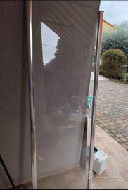 Vendo box doccia con porta apribile a scomparsa, per piatto doccia da 100 x 70, prodotto praticamente nuovo senza graffi senza calcare, usato per qualche mese, vendo in quanto sto ristrutturando e ho cambiato le misure del piatto doccia, prezzo a nuovo circa 400, lo scotch in foto è messo per non fare aprire la porta