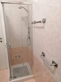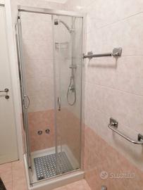 Vendo box doccia 70x70 in vetro con profili in acciaio cromato. Apertura angolare con ante scorrevoli. Prodotto in ottime condizioni