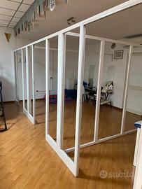 Vendo struttura box usata come stanze per fisioterapia, la struttura è in alluminio, i pannelli in bachelite super resistente, e le tre porte per l’accesso sono in plastica con apertura a soffietto. Le dimensioni sono scritte nelle foto allegate nell’annuncio.