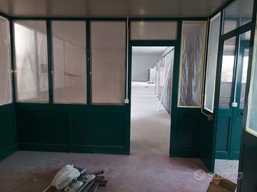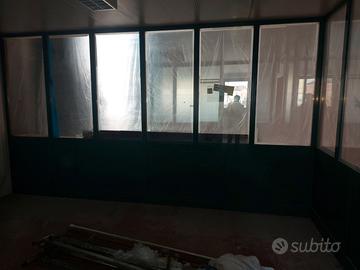 Box per ufficio senza tetto solo laterali misure esterne 7,20x5,00x2,70 con due porte e un scorrevole gia' smontato vetro da 2 cm per info 335 635 7450