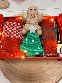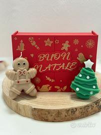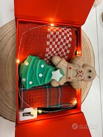 Box scatola chiusura calamita idea regalo Contiene due tovagliette da cucina piu due candele profumate natalizie