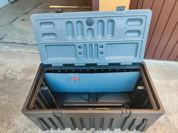 Vendo ampio baule portatutto rigido, ideale per viaggi, camping o per trasportare attrezzatura sportiva in totale sicurezza. Il box è realizzato in materiale termoplastico ad alta resistenza, robusto e resistente agli agenti atmosferici.Dimensioni: 100 x 50 x 46 cm (come indicato sulla marcatura). Sicurezza: Doppia chiusura
