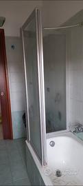 Vendo parete doccia sopravasca pratica e versatile. Caratteristiche: Comodissima paratia doccia per vasca da bagno. Pieghevole salvaspazio a parete. Leggera e funzionale. Facile da pulire. Struttura in alluminio grigio. Lastre in acrilico/vetro trasparente. Installazione pratica e sicura si fissa alla parete con due semplici viti fischer, sulla vasca non va forato o incollato, poggia solamente con delle guarnizioni che fanno anche da tenuta acqua. Profilo a muro di compensazione per regolare il fuori squadro delle pareti. Modello reversibile per installazione a destra o a sinistra. Le ante sono pieghevoli su se stesse e tutte ripieghevoli sull'anta di 68cm. Non ripiegabile a parete rimane a bandiera sul lato piccolo della vasca. Misure : 68+135 cm (ante frontali pieghevoli anta laterale non pieghevole). Lato corto che si fissa al muro 68cm Lato lungo composto da 3 ante di 50 cm + 44 cm + 41cm (circa) per un totale di 135 cm corca Altezza 140cm. Per maggiori informazioni contattatemi