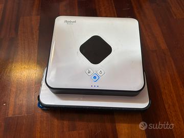 Irobot braava mop lavapavimenti ideale per piccoli appartamenti, spazza come lo swiffer con paunno a secco catturapolvere e poi lava cambiando panno e piastra connserbatoio, vendo per passaggio ad altro modello, vendo con accessori in foto piu base di ricarica turbo e gps. Pacco batterie gia sostituito da poco. Con scatola originale