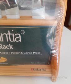 Brabantia Set 5 utensili da cucina in acciaio inox con espositore in legno ( misure 32x25x9 cm) che comprende: