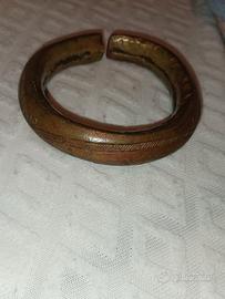 2 Questo oggetto è un antico bracciale in bronzo o rame, spesso identificato come una "manilla" o moneta bracciale proveniente dall'Africa Occidentale, utilizzato storicamente sia come ornamento che come valuta di scambio.