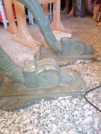 stupenda coppia di torceri settecenteschi in legno scolpito di ottima fattura,molto grandi ed eleganti. Il tipo di pittura secondo me non originale,da restaurare piccole parti lignee e dipingere o dorare a piacimento, sani e robusti come legno. misure larghezza 26 cm. profondità 57 cm. altezza 90 cm.