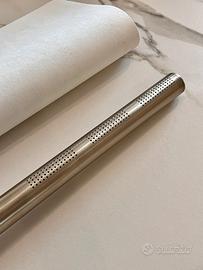 Braccio doccia dal design minimale con soffione integrato, perfetto per bagni moderni ed eleganti.