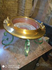 Vendo elegante braciere antico in ottone e rame, completo di base in ferro battuto lavorato.