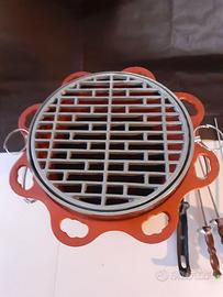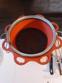 •Braciere con griglia a carbone per barbecue in acciaio e ghisa per attività indoor e outdoor