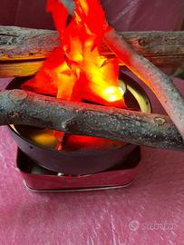 Braciere elettrico che simula il bruciare di una fiamma, molto realistico mimetizzandolo con rami di legno. Non riscalda mon é una stufetta