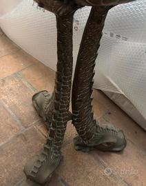 Splendido braciere monumentale in ottone brunito, riccamente lavorato a sbalzo e cesello con scene di genere e araldica. Un pezzo d'arredo di grande carattere e impatto Visivo. Caratteristiche Principali: Decorazioni: Tre riserve decorate con scene di mulini a vento, velieri e paesaggi rurali con bestiame. Araldica: Presente uno stemma nobiliare con due chiavi incrociate sormontato da corona. Dettagli: Maniglie ad anello rette da bocche di leone in altorilievo. Supporto: Imponente tripode a scaglie con piedi a forma di teste di delfino stilizzate. Stato: Ottime condizioni conservative, patina originale d'epoca. Perfetto come porta-piante da interno, porta-legna o come elemento decorativo per ingressi e saloni classici. Dimensioni: Altezza 81cm diametro 38cm per ulteriori info/foto scrivetemi