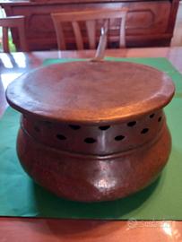 Braciere inizio '900, in perfette condizioni, in rame lavorato a mano . Dimensioni 51x26x16. Per chi fosse interessato vendo prete dello stesso periodo in perfette condizioni a 40€.