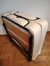 Letto pieghevole con ruote (branda) 80x190 cm, ottime condizioni, struttura metallica 25 mm, 7 doghe in legno multistrato di grandi dimensioni (17 cm), materasso spessore 14 cm. No spedizione. Prelievo sul posto e trasporto a carico dell'acquirente.
