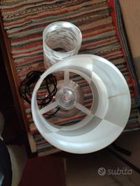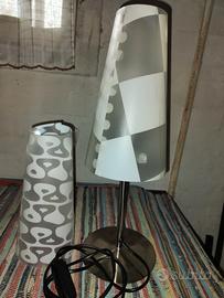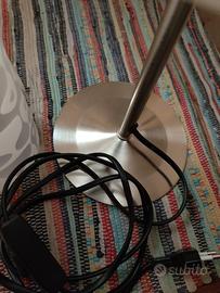 lampada da tavolo abat-jour brandani base e stelo in acciaio satinato completa con due possibilità di copertura in materiale trasparente plastico. Perfettamente funzionante altezza cm 41
