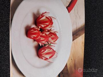 Mai usato. Set di 8 utensili. Cm 32,5x25x4,5. I prodotti della Brandani gift group sono il frutto di creatività, attenta selezione e ricerca nel mondo della casa,tavola e cucina. Presentato dallo chef toscano Claudio Menconi per la decorazione gastronomica. Gli attrezzi ed i suoi suggerimenti vi faranno realizzare vere e proprie opere d'arte,potrete acquisire destrezza e manualità che unite alla vostra fantasia faranno di voi dei veri e propri Arcimboldi. In cucina la decorazione è il biglietto da visita dei vostri piatti. Decorare è spettacolo e magia, vedere spuntare un anthurium da una foglia di radicchio, funghi porcini da un salume e insalata e margherite dal formaggio grana è sicuramente un momento di magico stupore che incanterá i vostri commensali.