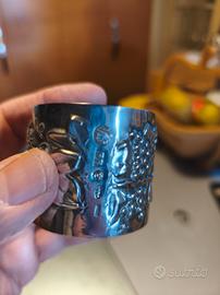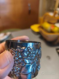 Marca: Brandimarte Firenze Portatovaglioli in Argento 925 con decorazione Uva in rilievo battuto a mano, lungo 45 mm ø 50 mm. Peso 39 gr. ciascuno. Casa Brandimarte
