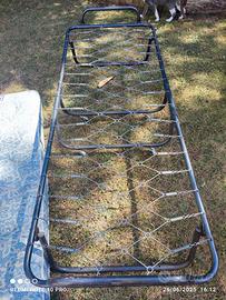 Brandina con materasso lunga 1,85 e larghezza 0,70 cm La struttura in ferro è un po' arrugginita, ma verniciandola diventa nuova ,il materasso è in buone condizioni, consegna sul posto. Tel 3494322900.