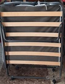 Brandina pieghevole nuova, la soluzione ideale per chi cerca un letto aggiuntivo per gli ospiti o per situazioni in cui lo spazio è limitato. Struttura resistente e pieghevole in metallo con doghe in legno, il letto è facile da riporre quando non in uso, occupando poco spazio. Il materasso singolo garantisce un confortevole riposo notturno, mentre la struttura robusta e resistente garantisce una lunga durata nel tempo. Questo letto è anche molto pratico da trasportare, con ruote piroettanti.