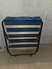 Brandina pieghevole per ospiti e/o campeggio 80x190 doghe in legno ben tenuta e in buono stato senza macchie. Misure della branda chiusa: profondità 28cm altezza 104 cm lunghezza 80 cm si trova a torrevecchia zona nord di Roma
