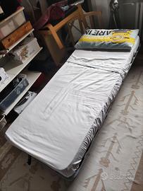 Vendo brandina pieghevole ad una piazza, comprensiva di comodo materasso H=13 cm. , struttura metallica facilmente chiudibile, dotata di rotelle per comodo spostamento, veramente comoda (un adulto dorme benissimo), usata pochissimo.