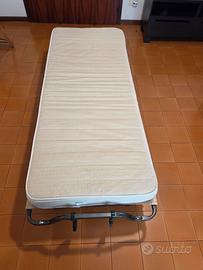 Brandina pieghevole dimensioni letto singolo (materasso 190x80x12 cm). Ingombro brandina aperta: 80x200 cm, altezza 40 cm. Ingombro brandina chiusa: 80x38 cm, altezza 110 cm. Ritiro in zona Centocelle.