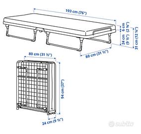 Brandina pieghevole, 80x190 cm. Acquistata un mese fa, usata pochissime volte, praticamente nuova. Completa di materasso e ancora nella scatola originale. Facile da aprire e chiudere, perfetta come letto aggiuntivo o per ospiti. Ritiro a Torino (zona Crocetta)