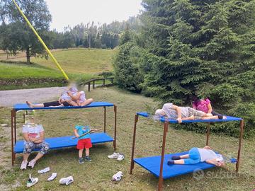 Vendesi n. 20 brande da campeggio/camposcuola da 2 posti (a castello), struttura in ferro tubolare, tessuto resistente borchiato, installato recentemente. Possibilità di utilizzo per campo scuola, campeggio, strutture di emergenza ecc. Se interessati si valuta anche la vendita/scorporo del solo tessuto borchiato. Il prezzo inserito è del tutto indicativo, si valuterà in base al reale interesse.