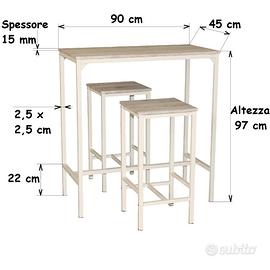 DIMENSIONI TAVOLO: Lunghezza 90 cm - Profondità 45 cm - Altezza 97 cm - Altezza poggiapiedi 22 cm - Peso 12 kg