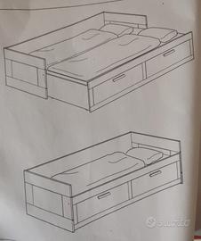 Il Letto brimnes è un comodissimo letto singolo o divano, che in 5 secondi si trasforma in un altrettanto comodo letto matrimoniale con doghe in legno. In più i due materassi singoli sempre ikea. Il tutto utilizzato 10 volte in 1 anno, pari al nuovo. Vendo per cambio casa. Trasporto a carico dell'acquirente (max lunghezza 200 cm)