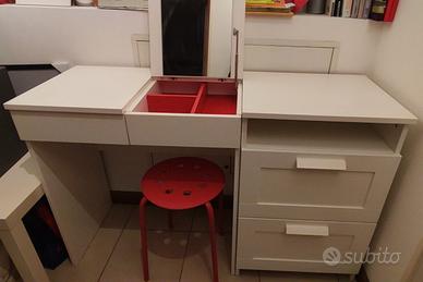 h 77 cm, profonda 42, larghezza 120 cm (70 cm scrivania + 50 cm cassettiera) vendute montate, ritiro a Brugherio
