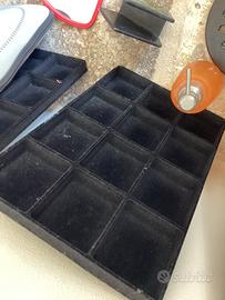 Buongiorno, mix di vari oggetti in vendita, tra i quali, porta occhiali Ray Ban, proteggi laptop 35x25 cm, vari bicchieri in vetro per uso generale (box di legno contenenti i bicchieri non incluso), 4 porta bijoux con scompartimenti) neri, una lavagnetta in ardesia, un binocolo con custodia, 4 specchietti, 1 caffettiera in vetro tipo moka, vari piatti purcellana (5 piani grandi 4 piccoli per dessert) e varie posate, saponette ber vasca bagno, apri bottiglie, grattuggia, cucchiaio speciale per gelato, 4 sotto piatti in tessuto beige 2 blu, 2 poggia testa per letto grigio, 1 saponiera e 1 porta spazzolini denti in arancione, 1 set manicure in custodia, 1 piccola perforatrice e vari piccoli articoli come da foto.. ritiro solo a mano ad Ostuni zona supermercato Famila.