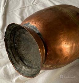 Antica brocca ad anfora in rame del medio oriente. Bellissimo complemento d'arredo o da collezione. Visto l'utilizzo e il tempo è ancora in ottime condizioni. In alcune parti presenta punti di ossido, che non ho tolto per lasciargli l'aspetto di antico, ma potrebbe essere lucidata perfettamente.