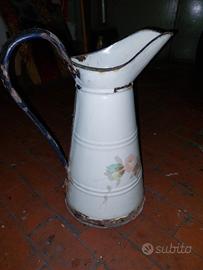 vendo questa brocca anni 50 ritrovata nel bagno di una casa abbandonata da circa 60 anni ottime condizioni considerando l età base 20 cm di diametro, altezza 40 cm non è bucata e i dipinti sono originali ben conservati. per info 3474592905