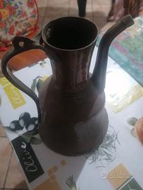 Brocca Antica o Brico di rame lavorato artigianalmente utilizzata anticamente per contenere liquidi con manico laterale si presta ad uso decorativo valore euro 135 lascio a euro 90