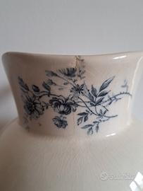 Bellissima brocca antica da camera in ceramica epoca fine 800 inizi 900. Manifattura made in germany del noto marchio Villeroy e Boch. Colore avorio e toni sul blu h 25 cm peso 1.400kg . Da utilizzare come vaso fiori decorazione esposizione oppure per collezionisti di ceramica. Presenta imperfezioni dovute all'uso e al tempo ma ancora utilizzabile. Possibilità di portarla lungo il tragitto bolzano verona