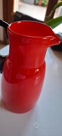 brocca in vetro opalino rosso e manico nero