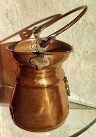Vi offro un raro pezzo d'arte decorativa italiana d'epoca: una brocca in rame con stemma dorato in rilievo, realizzata a mano in laboratori italiani, intorno al 1950-70.