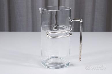 Questa brocca fa parte della serie Light & Music – Strauss, una linea contraddistinta dall’abbinamento di vetro e metallo argentato, con un’estetica sofisticata e una personalità forte tipica dei complementi da bar degli anni ’80. Il vetro cristallino esalta il colore dei cocktail serviti, mentre il metallo argentato conferisce un tocco elegante e retrò che si distingue sulla tua credenza o bancone.