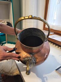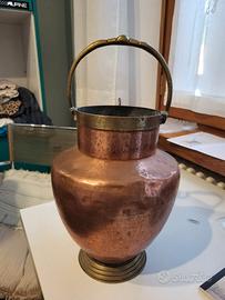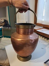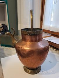 Brocca di rame e bronzo decorativa, originaria anni '50. Peso 2,3 kg, altezza 43 cm, base 14 cm, diametro corpo 23 cm.