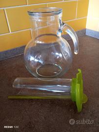 brocca di vetro con porta ghiaccio in plastica