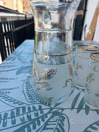 Brocca e bicchieri antiche con disegno fatto a fuoco