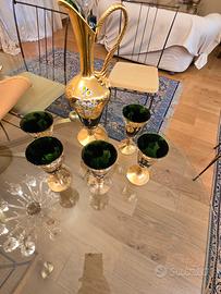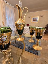 Vendo Brocca con rispettivi calici,di vetro murano,dorata dipinta a mano.